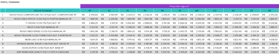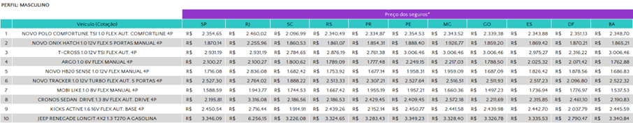 As cotações mencionadas no texto são as de menor valor dentro dos perfis cotados com as seguradoras.