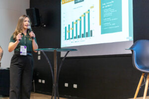 Anna Angotti, gerente de vendas de Seguros de Vida Individual e de Viagem na Omint Seguros, fechou a sequência de palestras do primeiro painel “Por que o corretor deve vender o seguro de vida?”. Em sua apresentação, a profissional elogiou os colegas que já haviam se pronunciado e falou sobre a importância de uma boa comunicação para a venda de um produto como o seguro de vida.