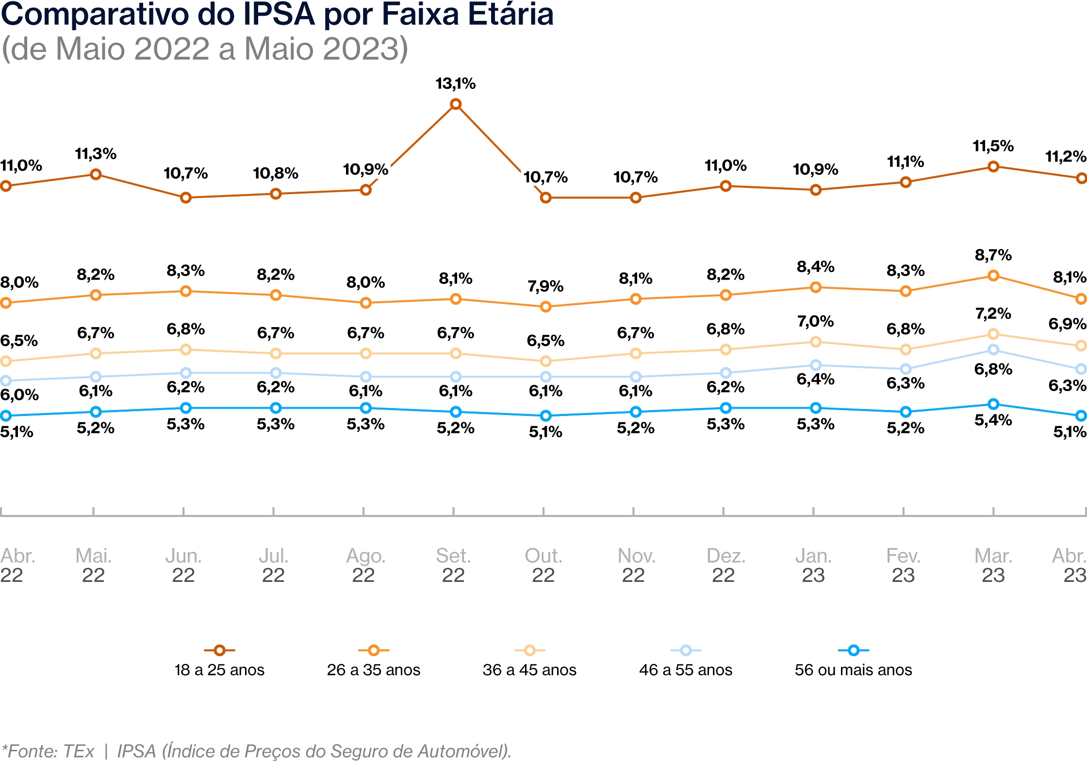 A TEx, insurtech especializada em soluções online para o mercado segurador, divulga os números de Maio de 2023 do IPSA – Índice de Preços do Seguro Automóvel. De acordo com o estudo, após o registro recorde apresentado em abril, o Índice de Preços do Seguro de Automóvel caiu 5,7% em maio, chegando ao valor de 6,6%. Já em comparação com 12 meses antes, houve um aumento de 3,1%.
