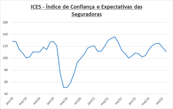 Em outubro, o setor de seguros continuou otimista (com valores acima de 100 pontos), mas em um nível menor do que há dois meses.