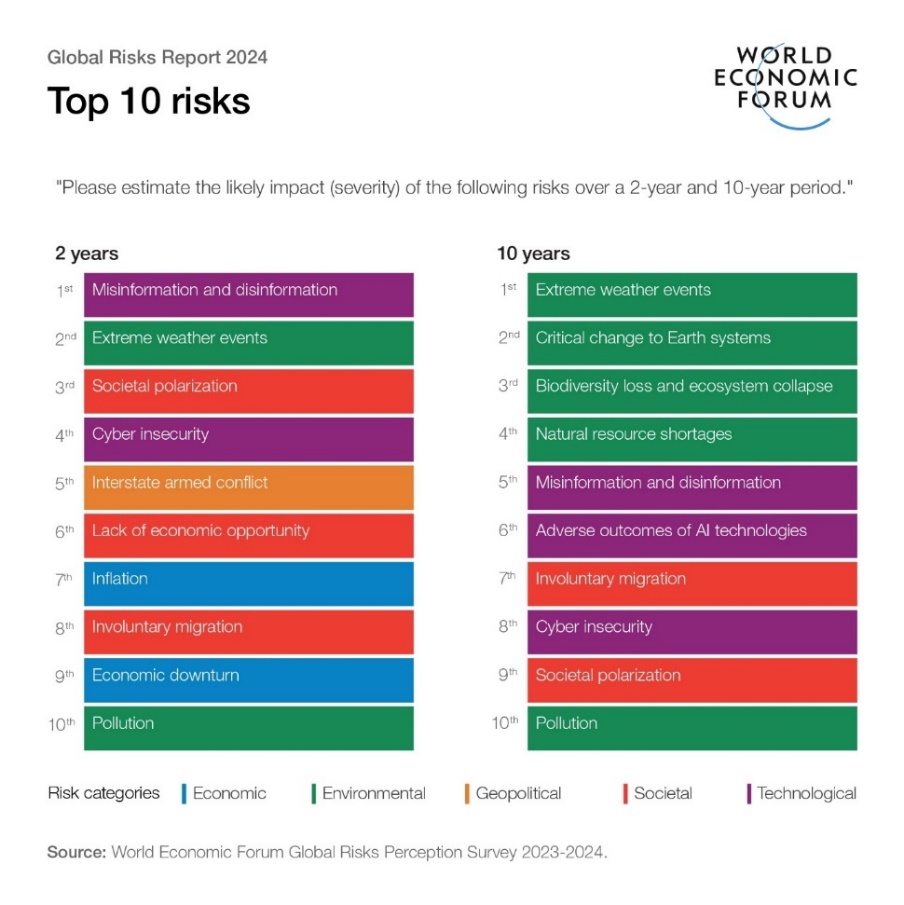 Fonte: World Economic Forum Global Risks Perception Survey 2023-2024