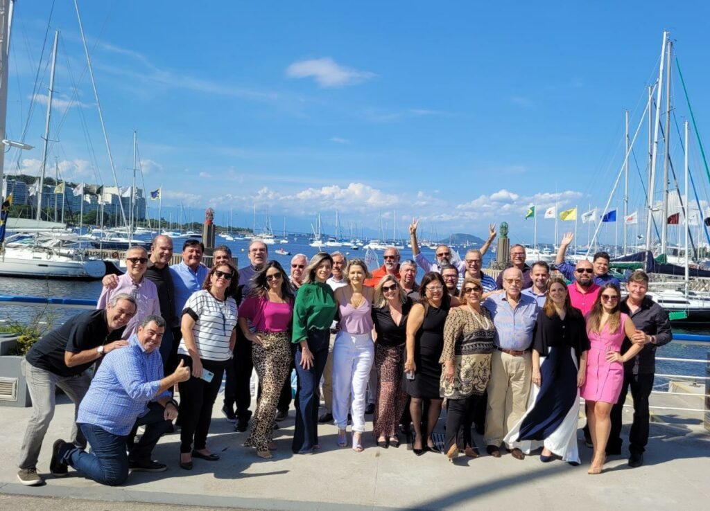Reunidos na belíssima paisagem vista do Iate Clube do Rio de Janeiro, tendo ao fundo a exuberante Baía de Guanabara, o encontro tradicional de final de ano, teve de tudo um pouco: comemoração da chegada de Fátima Monteiro, primeira mulher a ser conduzida ao posto de presidente; homenagem ao agora ex-presidente, Luiz Mário Rutowitsch, que recebeu placa em homenagem a gestão eficiente e participativa e muita alegria e confraternização conforme de costume