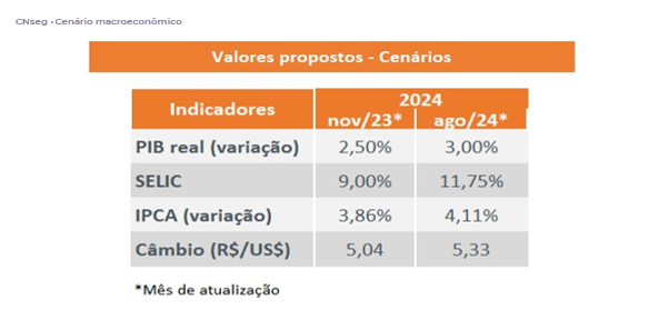 A Confederação Nacional das Seguradoras (CNseg) estima que a arrecadação do setor será 11% maior em 2024, um ponto percentual acima da revisão das projeções apresentadas na Conjuntura nº 105, de junho deste ano, mas 0,7 ponto percentual abaixo da previsão divulgada em dezembro de 2023.