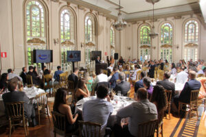 Logo após as homenagens, houve a solenidade de posse da nova diretoria, que assume o comando da entidade em 1º de janeiro de 2024. O presidente João Paulo Moreira de Mello, reconduzido ao cargo, fez um balanço positivo da gestão.