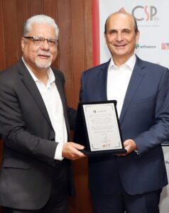 O CEO da companhia, Edson Franco, recebeu das mãos do presidente do CSP-MG, João Paulo Moreira de Mello, uma placa comemorativa. Franco esteve em Belo Horizonte visitando o Clube, no dia 1º de dezembro, depois de participar do 9º Encontro do CSP-MG.