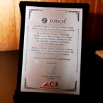 Os dizeres da placa ressaltam a trajetória de sucesso da companhia. “Global, conectada, inclusiva, inovadora, moderna, acolhedora. Nos sentimos honrados em contar com a Zurich como benemérita mantenedora. Parabéns, Zurich, diretoria e colaboradores!”
