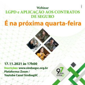 É na próxima quarta-feira: Webinar LGPD e Aplicação aos contratos de seguro