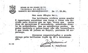 Em decorrência desta decisão, em 27 de setembro de 1984, o presidente do Tribunal de Justiça do Rio Grande do Sul, Des. Adroaldo Furtado Fabrício, registrou o importante momento para a economia do Brasil, com o envio de cartão ao presidente da Gente Seguradora, destacando que “tua brilhante vitória prova quanto é importante acreditar com força e lutar com decisão pelo direito que se tem. Prova que certa dose de quixotismo é necessária, sobretudo diante da prepotência. Que as eminências pardas do poder paralelo e extra-legal não são invencíveis. E que ainda há juízes no Brasil, portanto, há esperança. Sinceras congratulações e grande abraço pela belíssima lição de fé e determinação”.