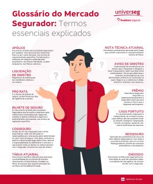 É comum surgirem dúvidas em relação ao vocabulário utilizado no mercado de seguros e é de grande importância desmistificar os termos e definições. Para ajudar os corretores em relação a esses questionamentos, o Grupo Bradesco Seguros criou um Glossário que reúne os termos mais recorrentes em produtos, contratos, negociações e demais atividades da rotina do setor. O material foi desenvolvido de acordo com as definições da Superintendência de Seguros Privados (SUSEP) e está disponível na íntegra pela plataforma Universeg para corretores cadastrados.