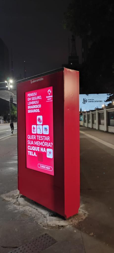 A ação ocorrerá no abrigo de ônibus da Av. Paulista (símbolo da cidade de São Paulo e um dos principais centros econômico, comercial e cultural do país), próximo ao número 200 – em frente ao Hospital Santa Catarina, e possuirá um display touch, com a frase “Pensou em Seguro, lembrou Bradesco Seguros”, que possibilita ao público que passa pelo local testar sua memória enquanto conhece mais a respeito dos produtos e serviços oferecidos pela companhia.