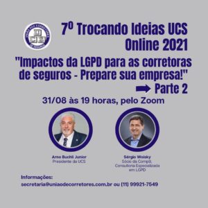 A UCS – União dos Corretores de Seguros – trouxe em seu 7º Trocando Ideias de 2021 (24/08) três especialistas para esclarecer as dúvidas dos corretores de seguros associados em relação à Lei Geral de Proteção de Dados Pessoais (LGPD – Lei nº 13.709/2018).