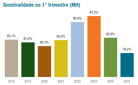 A redução da sinistralidade nos números agregados é explicada principalmente pela recomposição das mensalidades em proporção superior à variação das despesas assistenciais, movimento percebido no setor desde 2023 e mantido no período observado.