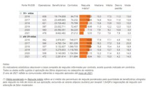Até maio de 2021, 478 operadoras já enviaram comunicados de reajustes referentes a 539.106 contratos. Até o momento, o reajuste médio, considerando planos empresariais e por adesão, é 5,55% para os contratos com 30 vidas ou mais; e 9,84% para os contratos com até 29 vidas e moda de 14%.