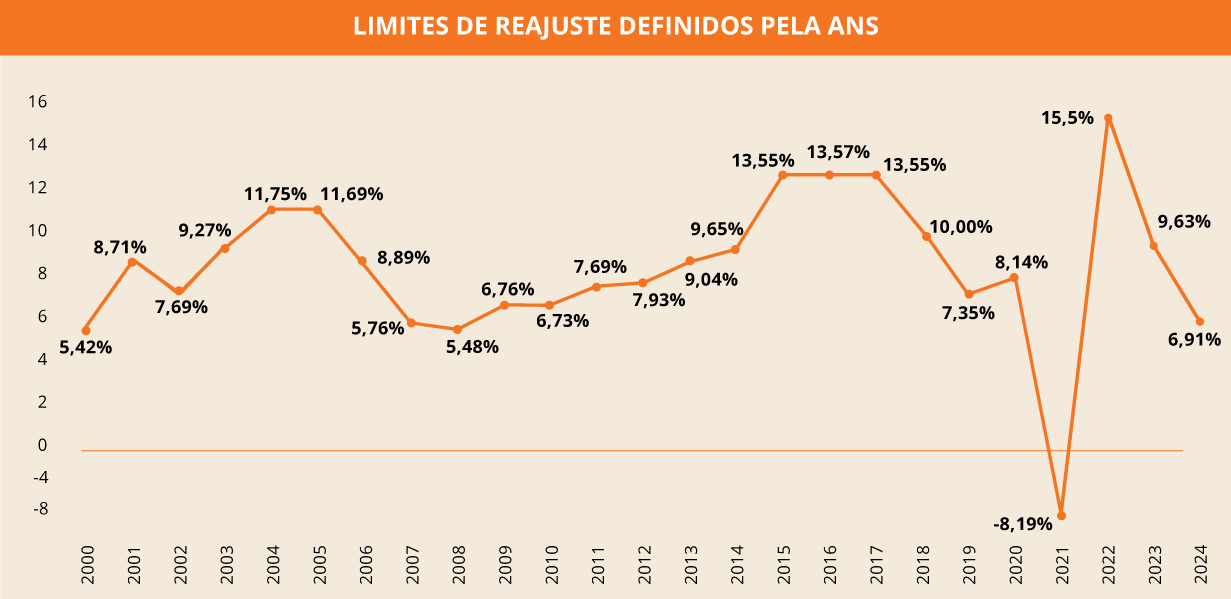 O percentual é o teto válido para o período entre maio de 2024 e abril de 2025 para os contratos de quase 8 milhões de beneficiários, o que representa 15,6% dos 51 milhões de consumidores de planos de assistência médica no Brasil (dados de março de 2024).