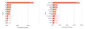 Outras informações mapeadas que também chamam atenção são relacionadas à distribuição de startups ativas por estado: entre 2019 e 2021, São Paulo teve o maior número de empresas fundadas, com 56,52%, seguido pelo Espírito Santo, com 8,70%.