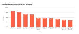 A pesquisa, realizada com 596 startups de 35 categorias, como oncologia, nutrição, planos e financiamento, autismo, bem-estar físico e mental, inteligência de dados, seniortechs, saúde no trabalho, entre outras, por meio do Startup Scanner, maior e mais oxigenada base de startups no país, aponta que os segmentos com mais empresas ativas são planos e financiamento (8,31%), seguida por gestão de processos (7,81%) e exames e diagnósticos (6,80%).