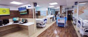 Já as UAPS – Unidade de Apoio ao Pronto-Socorro, é destinada a pacientes que carecem de uma internação rápida, contando com o melhor atendimento, tecnologia de ponta e acolhimento assistencial. O espaço foi ampliado e passou por uma significativa reestruturação. Para isso, foi construído um prédio que abriga a expansão e acesso direto ao Pronto-Socorro Geral, com aumento da capacidade de atendimento em 60%. Em uma área integralmente nova, a unidade agora conta com 19 leitos individuais, oferecendo expressiva privacidade e cores harmoniosas, deixando o ambiente mais agradável e acolhedor e com todo o suporte para garantir a higiene local. Seu espaço físico também aumentou em 71%, passando para 310m² de área construída.
