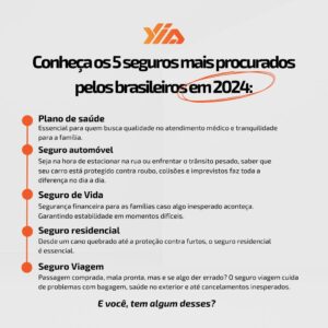 Entre os Top 5 seguros mais procurados em 2024 estão: Saúde, Automóvel, Vida, Residencial e Viagem. Segundo a Agência Nacional de Saúde Suplementar (ANS), vem aumentando mês a mês os números de beneficiários de planos de saúde desde agosto do ano passado, incluindo planos de saúde e odontológicos individuais e coletivos.