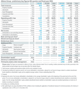 3: Incluindo a aplicação de medidas de transição para provisões técnicas, o coeficiente de capitalização Solvency II foi de 239% no final de 2021 (236 % no final do terceiro trimestre de 2021).