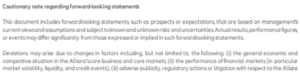 2: Como sempre, catástrofes naturais e desdobramentos adversos nos mercados de capitais, bem como os fatores apontados na nossa nota de advertência com relação a declarações prospectivas podem afetar seriamente o lucro operacional e/ou o lucro líquido das nossas operações e os resultados do Grupo Allianz.