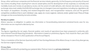 Em 17 de fevereiro de 2022, a Allianz anunciou um novo programa de recompra de ações de até 1 bilhão de euros para 2022.