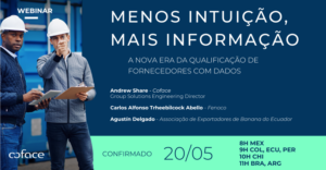 O webinar contará com a participação de Andrew Share, Diretor de Engenharia de Soluções de Grupo – Business Information na Coface, Carlos Alfonso Trheebilcock Abello, da Ferrovias do Norte da Colômbia (Fenoco), e Augustin Delgado, da Associação dos Exportadores de Bananas do Equador.