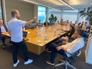 O primeiro dia de visitas foi marcado pelo tour no prédio do Grupo HDI na Berrini, onde os parceiros foram recebidos por Marcos Bailer, superintendente de Sinistro da companhia, para uma apresentação sobre sinistros e operações, e por Eduardo Sallum, diretor do canal Affinity do conglomerado, que abordou a estratégia para este segmento. Para encerrar o encontro, os convidados desfrutaram de um momento de interação em um happy hour junto com os executivos da seguradora.